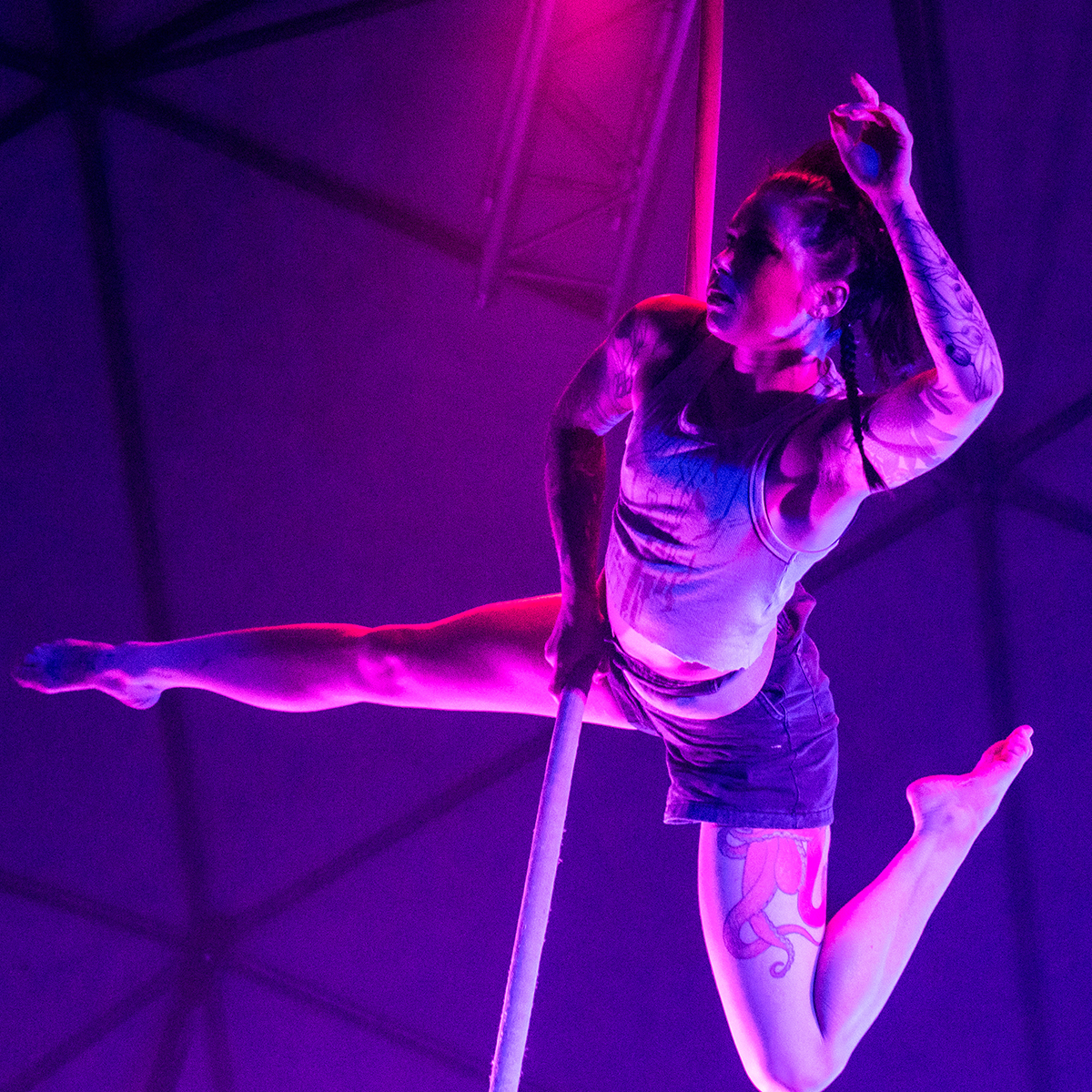 Nightrunner is a highly immersive, cinematic circus experience where pulsing electronic score and cyberpunk design merge with physical storytelling to explore the cost of escape and the fragility of identity in an age dominated by artificial pleasure.