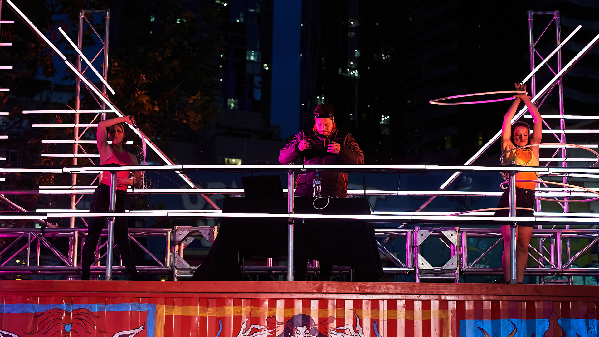 The_Neon_Funk is our contemporary Colosseum. With a dystopian, neon aesthetic, and dynamic animations of circus, light, and music, Neon Funk was an activation that engaged Queen Victoria Market. It can now be easily installed to bring life, colour and celebration to many other sites going forward.